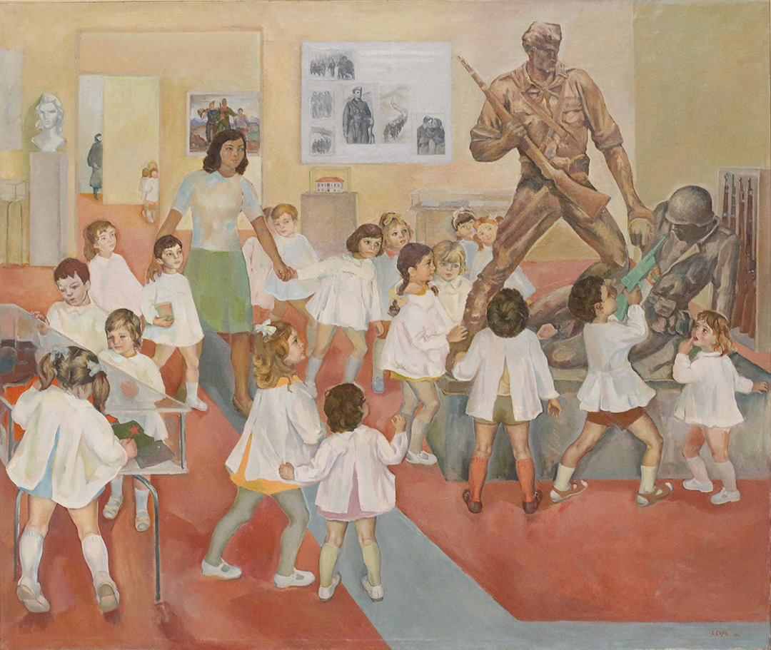 Liljana Çefa, Fatosat në muze (The children in the Museum), 1974, 133 x 158,3 cm, oil on canvas. Photo Ylli Bala, Courtesy of the National Gallery of Arts.